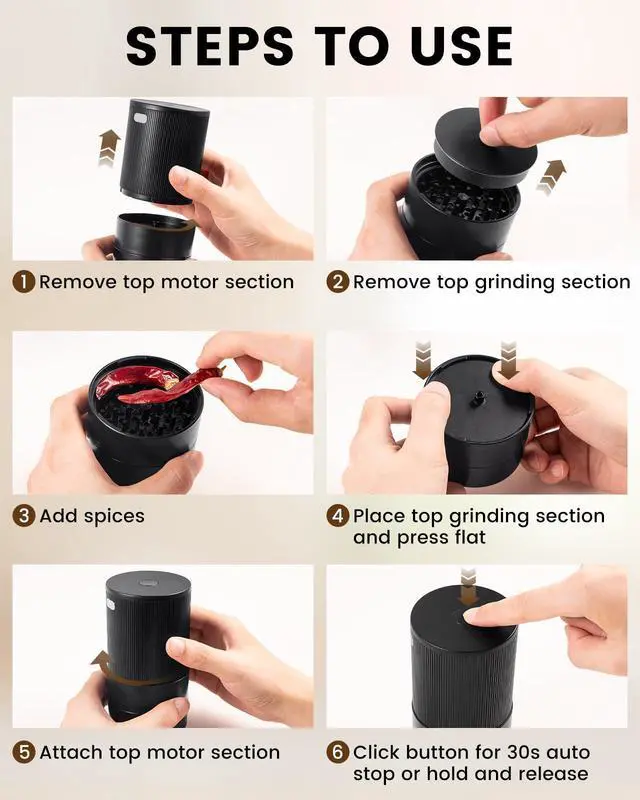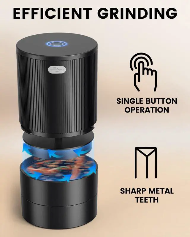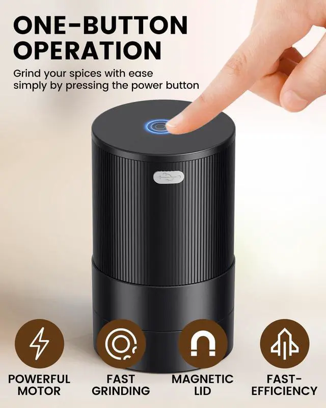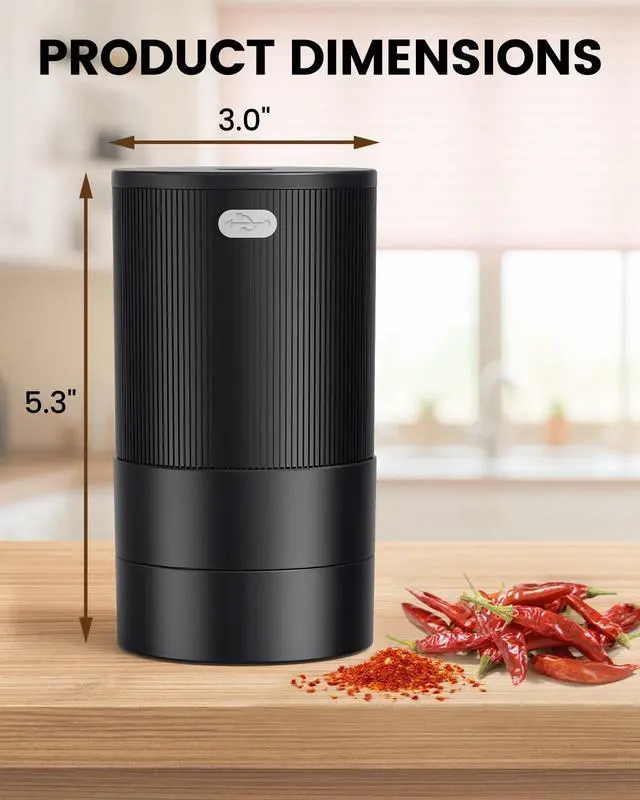 Say goodbye to manual grinding! Our one-button electric design is a game-changer for users with arthritis or limited grip strength. Simply load your soft dried spices, press the button, and achieve a consistent texture in seconds.