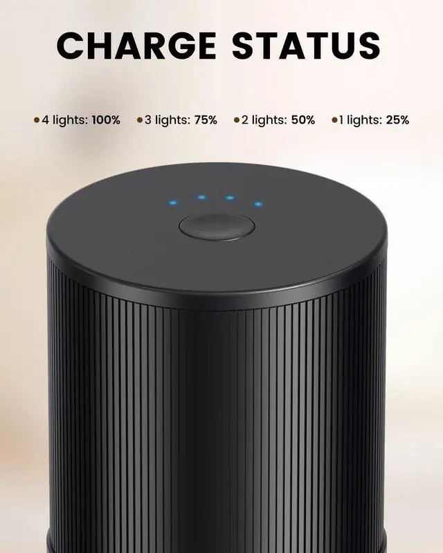 Equipped with a long-lasting rechargeable battery and a clear 4-LED indicator (25%-100%). You'll never be caught off guard mid-prep.