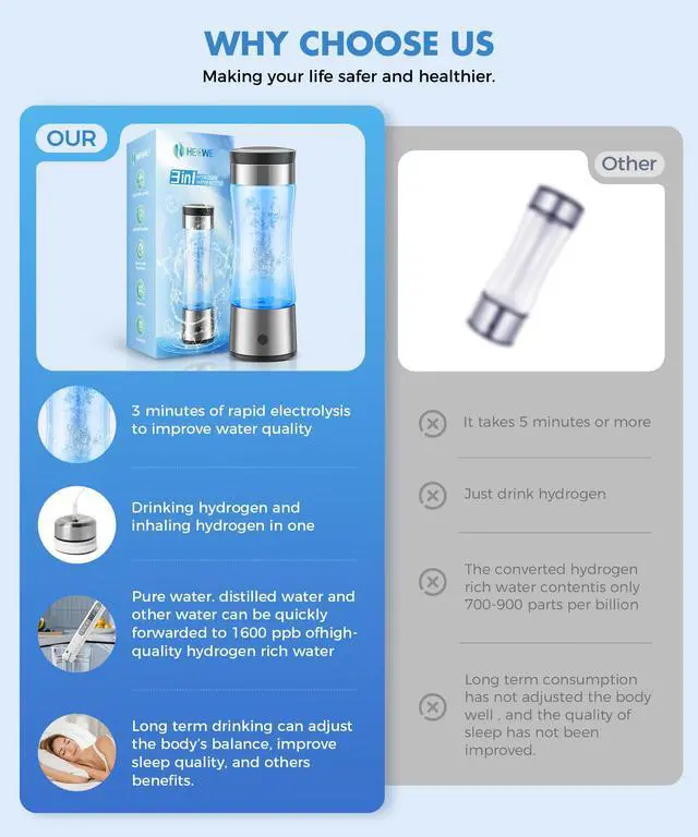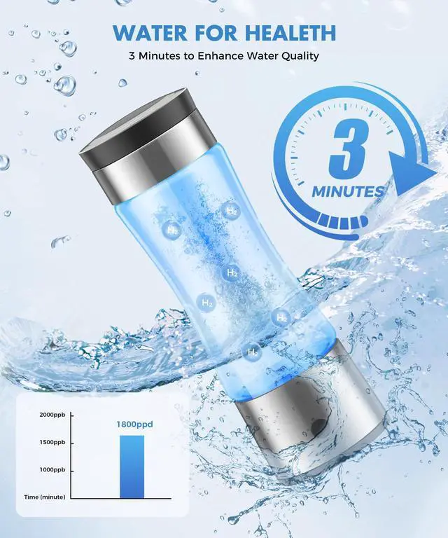 EFFECTIVELY IMPROVES WATER QUALITY: The Hydrogen water bottles make water molecules smaller for better absorption, boosting metabolism, helping to improve sleep quality and improving skin in a natural way.Hydrogen-rich water not only helps reduce internal oxidation but also enhances immunity, promotes metabolism, and alleviates inflammation, Thereby improving sub-health, and restoring youthful health and vitality.
