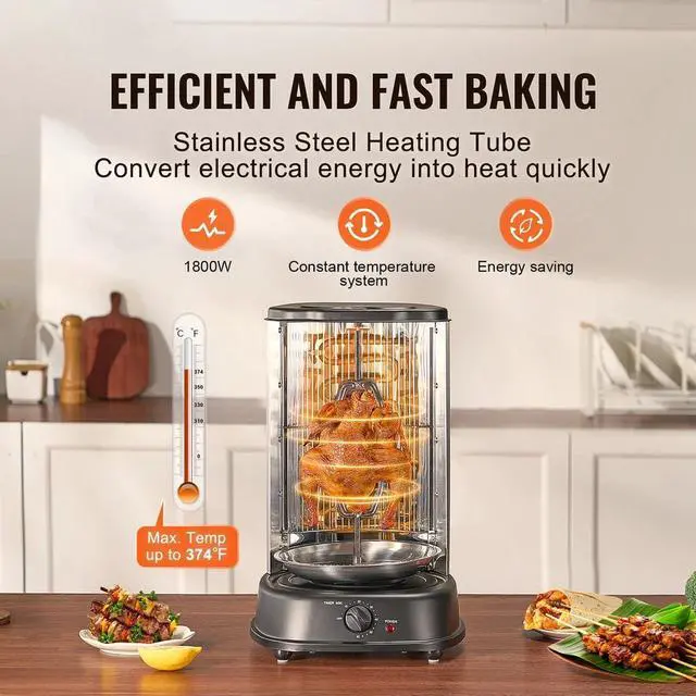 This vertical rotisserie is perfect for family restaurants, kitchens, and backyard gatherings, making it a versatile addition to any culinary setup.