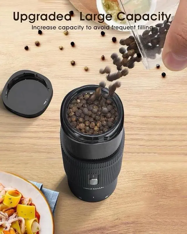 Upgraded Larger Capacity Electric Salt and Pepper Grinder Set, Rechargeable Salt and Pepper Grinder Set with Charge Base, Adjustable Coarseness, Efficient Kitchen Gadgets