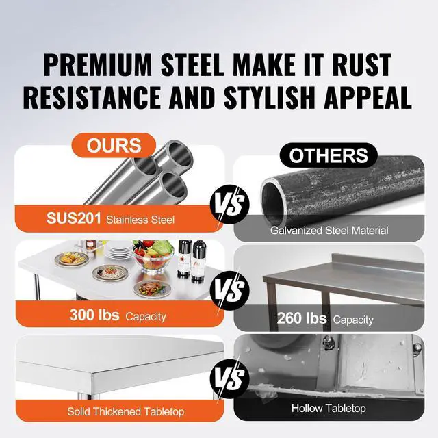 Folding Commercial Prep Table, 48 x 30 Inch Commercial Worktable Workstation, Heavy-duty Stainless Steel Folding Table with 300 lbs Load, Kitchen Work Table, for Home Kitchen Restaurant Garage