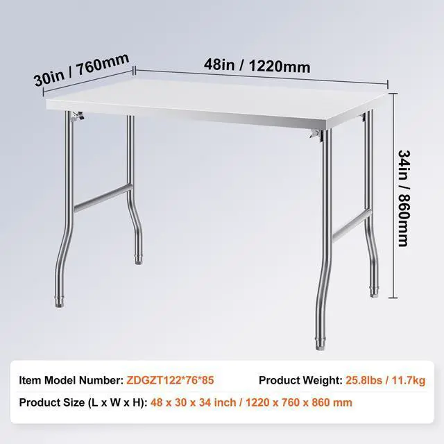 Item Model Number: ZDGZT122*76*85 Material: Stainless Steel Product Weight: 29 lbs / 13 kg Product Size (L x W x H): 48 x 30 x 33 inch / 1220 x 760 x 850 mm