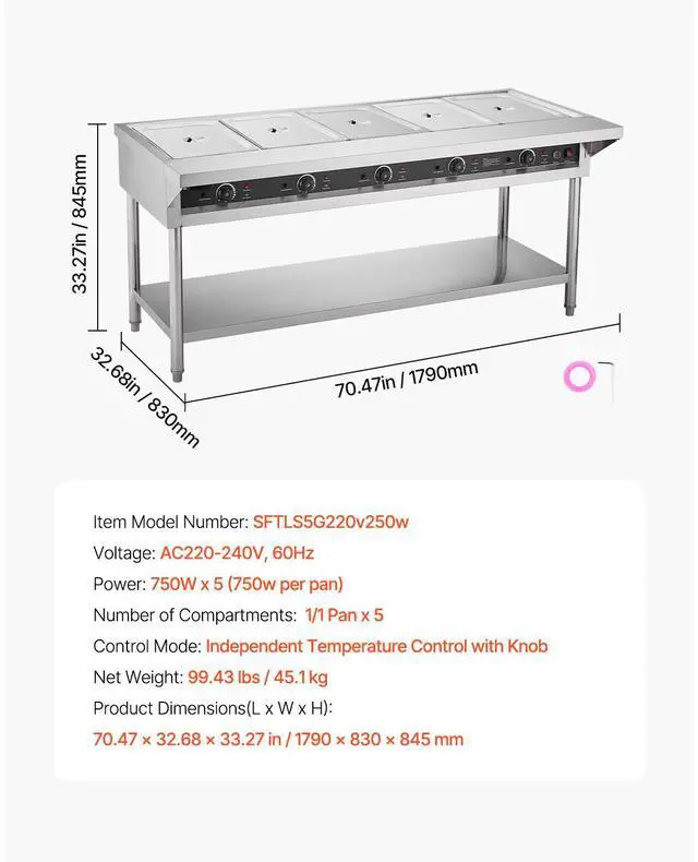 Power: 750W x 5 (750w per pan)