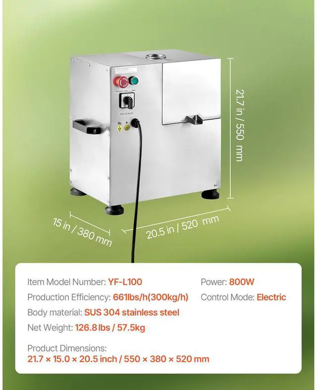 Production Efficiency: 661 lbs/h (300 kg/h)
