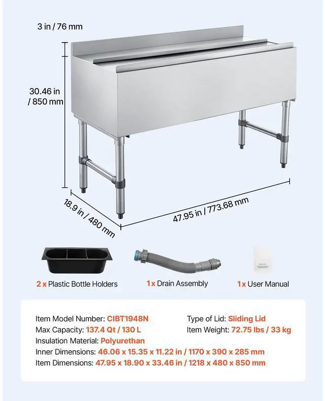 Item Dimensions: 47.95 x 18.90 x 33.46 in / 1218 x 480 x 850 mm