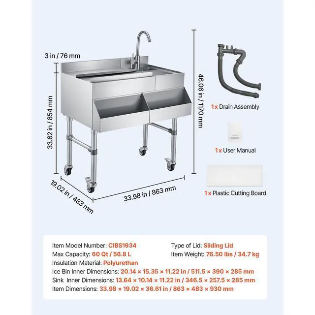 1 x Commercial Ice Bin with Sink