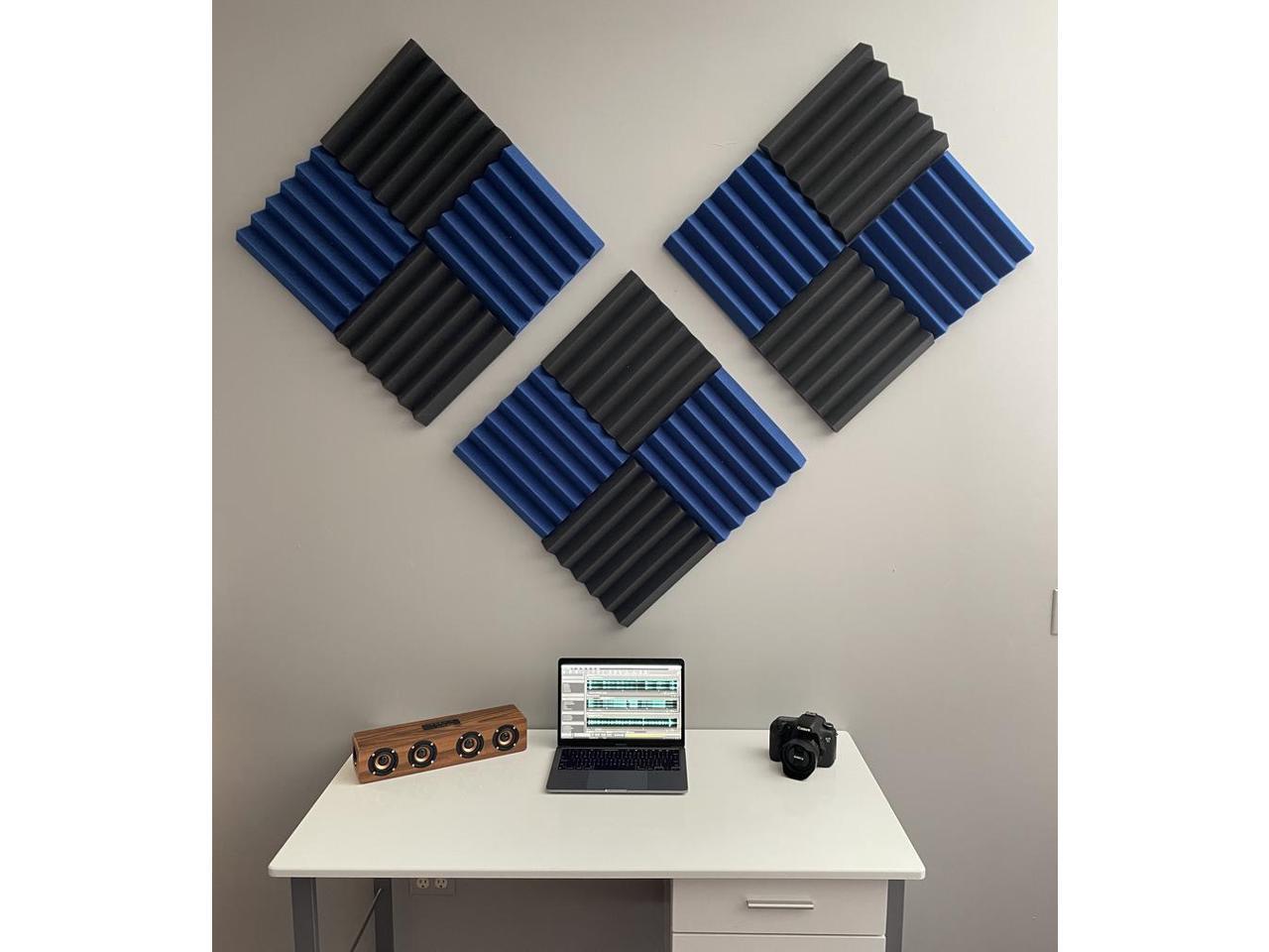Soundproof Store, 2x12x12-12PK Acoustic Wedge Soundproofing Studio Foam, BLUE/CHARCOAL