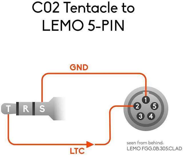 Cable to feed timecode from your Tentacle to any device that uses a standard LEMO 5-pin connector. You need this cable if you want to connect Tentacle to devices like ARRI Alexa, RED One or Sound Devices 702T / 744T / 788T / 664 / 633 or others that using a LEMO 5-pin connector.