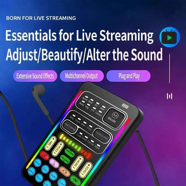 [Portable Yet Powerful Sound Card] Despite its compact size, this sound card packs serious performance. Choose from 7 smart modes including Singing and Live Streaming. Customize pitch and four input/output settings. Features three pro-level tools: vocal remover (keeps background music only), noise reduction, and auto ducking. Supports two phones and one PC at the same timeideal for cross-platform streaming.