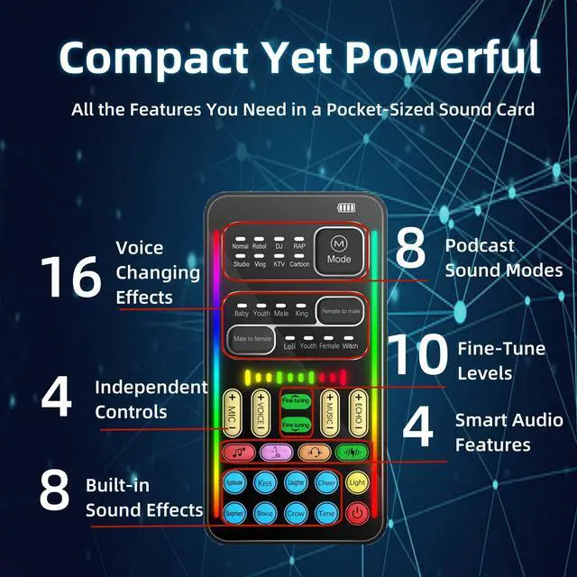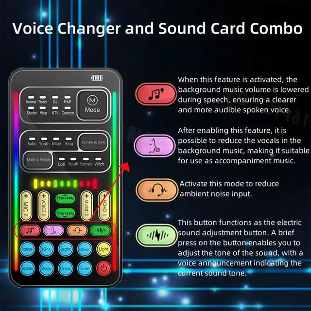 [Multi-Function Real-Time Voice Changer] Transform your voice in real time with 8 unique sound modesmale to female, female to male, cute, funny, robotic, and more. Each mode includes 10 adjustable tone levels to help you fine-tune your ideal sound. Perfect for phone calls, gaming, livestreaming, or content creation.