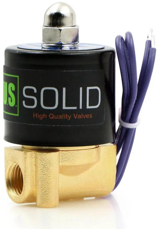 The U.S. Solid electric solenoid valve features a durable brass body, suitable for outdoor but not underwater use. It's favored by customers for DIY projects, moderate temperature and chemical applications, as well as for controlling flow in irrigation, reverse osmosis, and motorcycle systems.