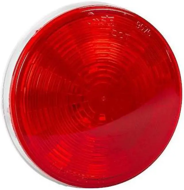 Stop/Turn/Tail Light, Lighting Technology LED, Light Type Stop Light, Lens Color Red, Shape Round, Overall Diameter 4 5/16 in, Overall Height 4 5/16 in, Overall Width Not Applicable, Overall Depth 1 9/16 in, Current 0.03 to 0.24 A, Electrical Connection Pigtail, Compatible Electrical Connection Grainger Part Number 2CWV3, 2CWV9, 2CWX9, 2CWZ7, 2VPK9, Compatible Electrical Connection Manufacturer Model Number 66811, 66812, 66825, 66843, 66844, 67000, 67090, Mount Type Grommet, Mount Style Surface. This item has been restricted from sale in the following state (s): []