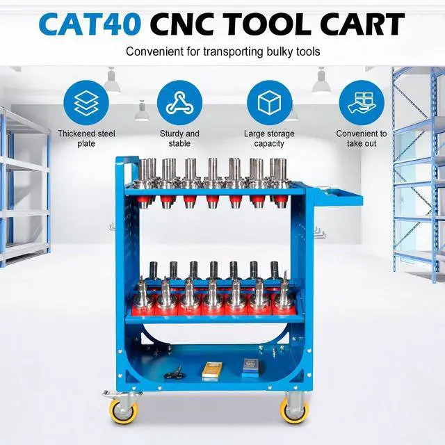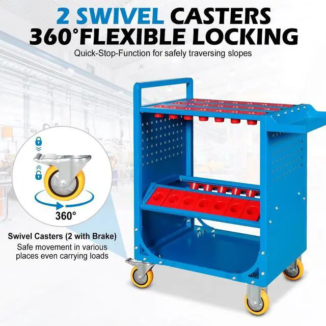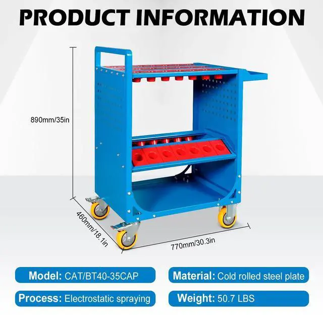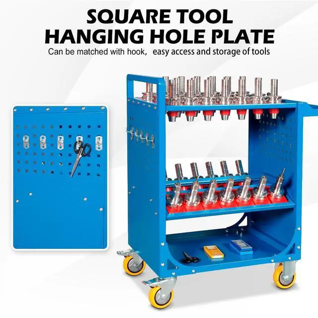 Professional CNC Tool Cart – CAT40/BT40 35-Capacity Holder with Brake Wheels, Blue