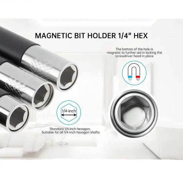 ![]() Extendable Drill Bit Extension | ![]() ChgImposs 4PCS Magnetic Drill Bit Extension Set – 300mm (12") Fixed + 80/120/... | ![]() 4PCS Magnetic Drill Bit Extension Set | ![]() Magnetic Screw Holder | ![]() Drill Bit Holder Magnetic | ![]() Quick Release Bit Holder | |
