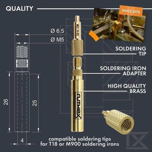 | Soldering tip adapter | 900M / T18 | TS100 / TS101 / PINECIL | Weller Serie ET & LT | ERSA Serie 832, 842 & 102 | no data | no data |
