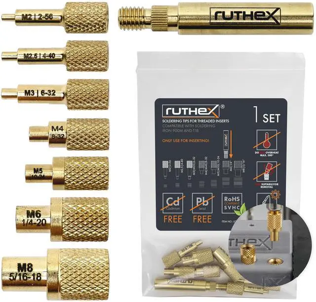 ![]() ruthex 7x Soldering Tips/Heat Set Insert Tips - for Thread Inserts M2 / M2.5 ... | ![]() ruthex 1 x Soldering Tip Adapter for TS100 / TS101 / Pinecil Series for ruthe... | ![]() ruthex 2x Soldering Tips adapter for Weller series ET & LT - Soldering Iron t... | ![]() ruthex 2x Soldering Tip adapter for ERSA series 832, 842 & 102 - Soldering Ir... | ![]() ruthex Threaded Inserts M2 + M3 + M4 + M5 Assortment Box - 70 + 100 + 50 + 50... | ![]() ruthex M3 Threaded Inserts - 100 Pieces RX-M3x5.7 Brass Heat Set Insert for P... | |