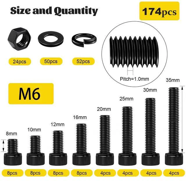 ![]() Fgruh 2300PCS M3 Screws with Nuts Assortment Kit, M3*4/6/8/12/16/20/25/30/35 ... | ![]() Fgruh 1500PCS M4 Screws with Nuts Assortment Kit, M4*6/8/12/16/20/25/30/40 mm... | ![]() Fgruh 750PCS M3 Screws Assortment Kit, M3x6/8/10/12/16/20/25/30 mm Hex Socket... | ![]() Fgruh 720pcs M3 Screws Assortment kit, Hex Socket Head Cap Bolts, Nuts & Wash... | ![]() Fgruh 490pcs M4 Screws,Nuts and Washers Assortment kit, M4x6/8/10/12/16/20/25... | ![]() Fgruh 172pcs M6 Screws Assortment kit, M6x8/10/12/16/20/25/30/35 mm Hex Socke... | |