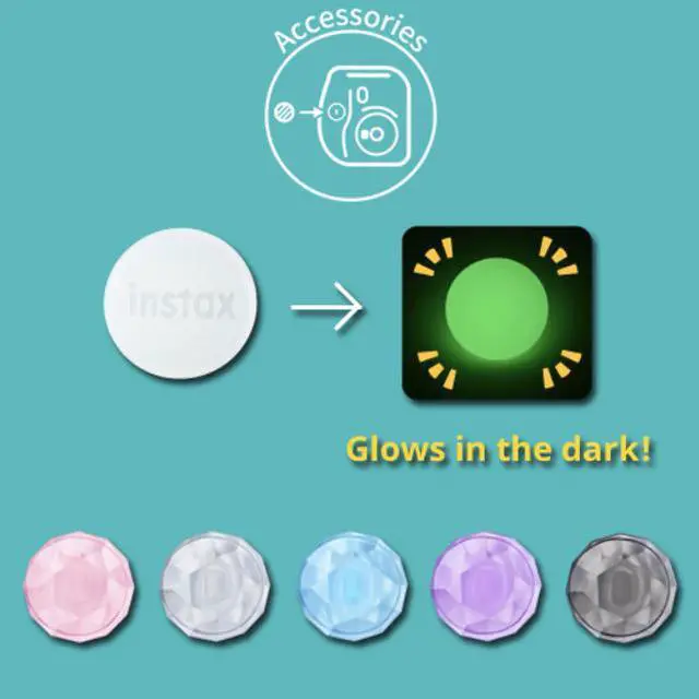 Get photos instantly with the sleek, fun, and stylish Fujifilm Instax Mini 11 camera. With its automatic exposure function, there is no need to adjust a dial anymore to take photos based on your lighting. Just snap and shoot! Make your shot even more close and personal by extending the Mini 11's lens barrel to Selfie Mode that will allow you to get a close 11.8" to 19.7" focusing and use the built-in mirror on the front of the lens for perfectly composed selfies. The Mini 11 includes two shutter button design accessories (glow-in the-dark and jewel-like button covers) that can be attached to the shutter button for fun customization along with a matching camera strap.