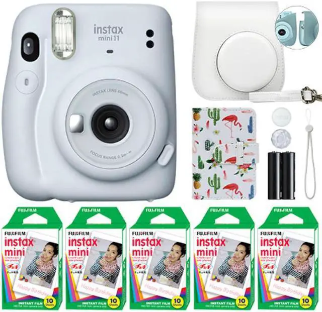 Get photos instantly with the sleek, fun, and stylish Fujifilm Instax Mini 11 camera. With its automatic exposure function, there is no need to adjust a dial anymore to take photos based on your lighting. Just snap and shoot! Make your shot even more close and personal by extending the Mini 11's lens barrel to Selfie Mode that will allow you to get a close 11.8" to 19.7" focusing and use the built-in mirror on the front of the lens for perfectly composed selfies. The Mini 11 includes two shutter button design accessories (glow-in the-dark and jewel-like button covers) that can be attached to the shutter button for fun customization along with a matching camera strap.
