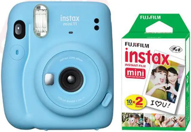 Get photos instantly with the sleek, fun, and stylish Fujifilm Instax Mini 11 camera. With its automatic exposure function, there is no need to adjust a dial anymore to take photos based on your lighting. Just snap and shoot! Make your shot even more close and personal by extending the Mini 11's lens barrel to Selfie Mode that will allow you to get a close 11.8" to 19.7" focusing and use the built-in mirror on the front of the lens for perfectly composed selfies. The Mini 11 includes two shutter button design accessories (glow-in the-dark and jewel-like button covers) that can be attached to the shutter button for fun customization along with a matching camera strap.