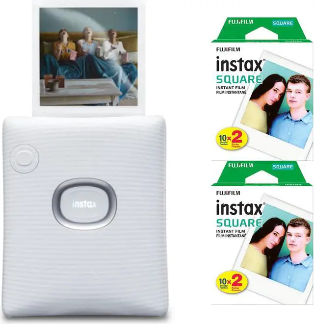 Fujifilm instax Square Film Twin PackThe instax Square film adds sophistication and style to your life by producing instant photos with a retro and classic feel. The FujifilmKEY_TAB instaxKEY_TAB Square FilmKEY_TAB 62mm x 62mm photos can fit in your pocket and print with ease. Compatible with any instax Square Camera or instax Share Smartphone Printer, this twin film pack provides 40 exposures with a 1 x 1 viewing angle that always look great.