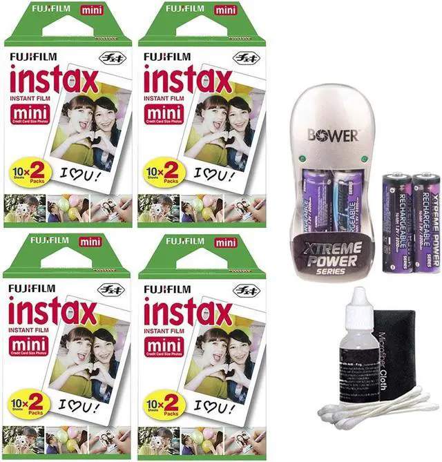 Image Size: 2.13" x 3.4". Designed for use with Instax Mini line of cameras. Xtreme Power Series 4AA/AAA Battery Charger - AC plug European adapterCharges 4 AA/AAA batteries at onceLED charging indicator100% memory free batteriesRechargeableIncludes 4 1.2V 2200 mAh AA batteries3 PC Cleaning Kit -This 3 piece cleaning kit is perfect to carry in your camera bag.