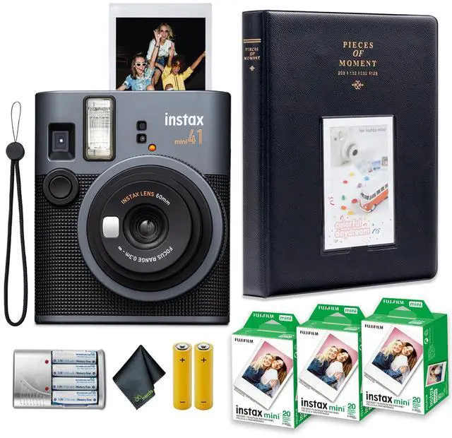 The 60mm f/ 12.7 lens, optical viewfinder with target spot, and electronic shutter simplify the shooting process while still giving users room for creative framing. Designed for casual photographers, travelers, and those looking to document daily life with ease, Fujifilm Instax MINI 41 Instant Camera offers intuitive operation in a sleek, portable form. Powered by two AA batteries and featuring a built-in flash with a quick recycle time, its a reliable companion for spontaneous shooting on the go.