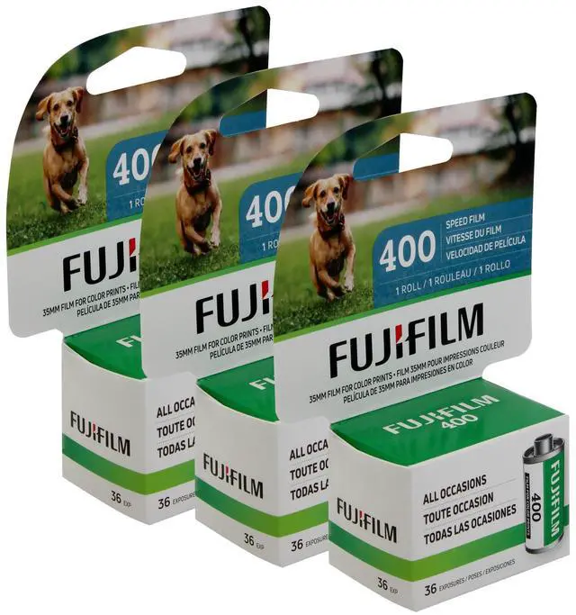 3X FUJIFILM 400 COLOR NEGATIVE FILM (35MM ROLL FILM, 36 EXPOSURES) FUJIFILM 400 Color Negative Film (35mm Roll Film, 36 Exposures)FUJIFILM 400 Color Negative is a high-speed, daylight-balanced, 35mm color negative film offering a wide exposure latitude for greater versatility as well as a fine grain structure with consistent and accurate colors. With a nominal sensitivity of 400 ISO, this versatile stock can serve a multitude of applications under a wide range of lighting conditions. From sun-drenched vacation snaps to a flash-lit night scene, this color film is designed to produce quality prints.