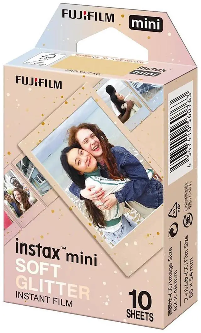 Add some glitter to your instax mini instant images! The instax mini Soft Glitter instant film pack features a playful soft ombre color scheme with specs of glitter all throughout the border design on a 2" x 3" size instax mini photo print, that will add a trendy new look to your print. The muted tones and shine of this film pack are perfect for parties, selfies or your pets! The instax mini Soft Glitter instant film pack is available in a 10 exposure pack.