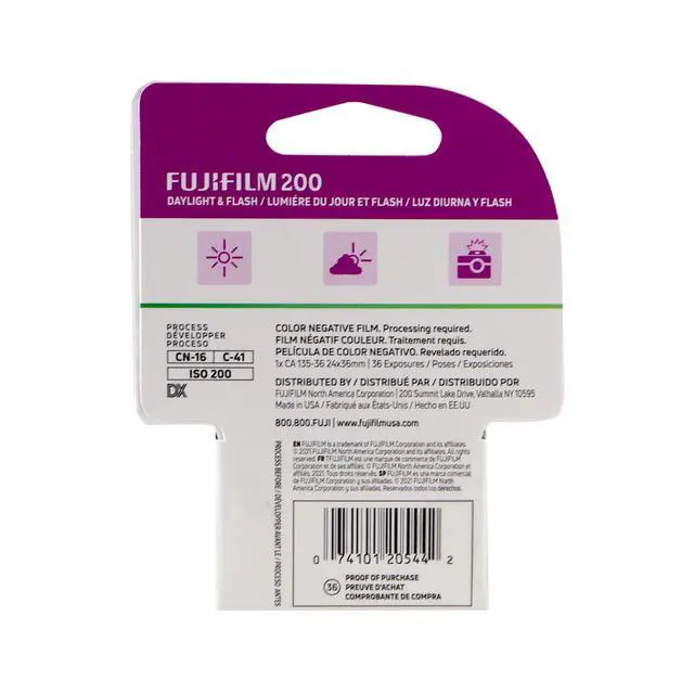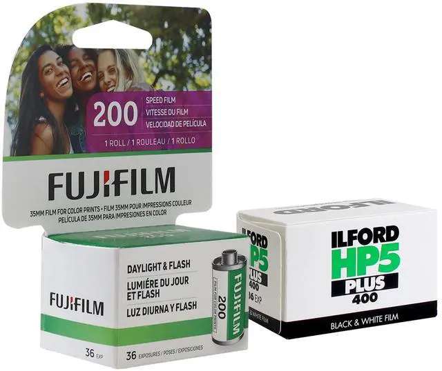 FUJIFILM 200 COLOR NEGATIVE 35MM FILM (36 EXPOSURES) + ILFORD HP5 PLUS BLACK AND WHITE NEGATIVE FILM (35MM ROLL FILM, 36 EXPOSURES) FUJIFILM 200 Color Negative Film (35mm Roll Film, 36 Exposures) FUJIFILM 200 Color Negative Film is a medium-speed, daylight-balanced film offering a vivid color palette and excellent sharpness. It features a nominal sensitivity of ISO 200/24° along with a wide exposure latitude for use in a variety of lighting conditions. The film produces natural skin tones for portraits and group settings, and its fine-grain structure enables high-quality results for prints and enlargements.