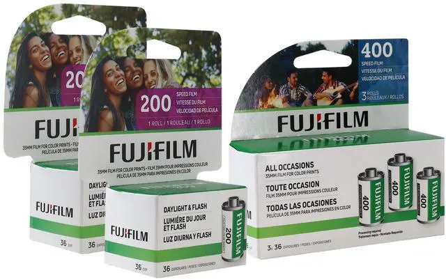 FUJIFILM 400 COLOR NEGATIVE 35MM FILM (36 EXPOSURES) - 3 PACK + 2X FUJIFILM 200 COLOR NEGATIVE 35MM FILM (36 EXPOSURES) FUJIFILM 400 Color Negative Film (3-Pack, 35mm Roll Film, 36 Exposures) This FUJIFILM 400 Color Negative (3-pack) is a high-speed, daylight-balanced, 35mm color negative film offering a wide exposure latitude for greater versatility as well as a fine grain structure with consistent and accurate colors. With a nominal sensitivity of 400 ISO this versatile stock can serve a multitude of applications under a wide range of lighting conditions. From sun-drenched vacation snaps to a flash-lit night scene, this color film is designed to produce quality prints.