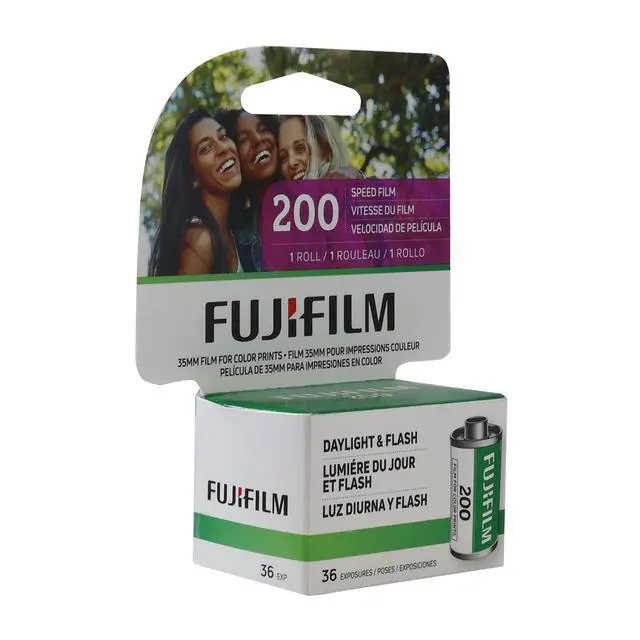 FUJIFILM 200 Color Negative Film (35mm Roll Film, 36 Exposures) FUJIFILM 200 Color Negative Film is a medium-speed, daylight-balanced film offering a vivid color palette and excellent sharpness. It features a nominal sensitivity of ISO 200/24° along with a wide exposure latitude for use in a variety of lighting conditions. The film produces natural skin tones for portraits and group settings, and its fine-grain structure enables high-quality results for prints and enlargements.