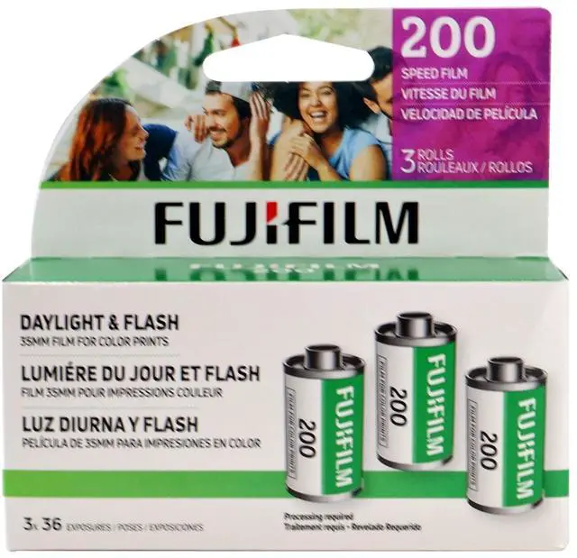 FUJIFILM 200 Color Negative Film (35mm Roll Film, 36 Exposures, 3-Pack) FUJIFILM 200 Color Negative Film is a medium-speed, daylight-balanced film offering a vivid color palette and excellent sharpness. It features a nominal sensitivity of ISO 200/24° along with a wide exposure latitude for use in a variety of lighting conditions. The film produces natural skin tones for portraits and group settings, and its fine-grain structure enables high-quality results for prints and enlargements.