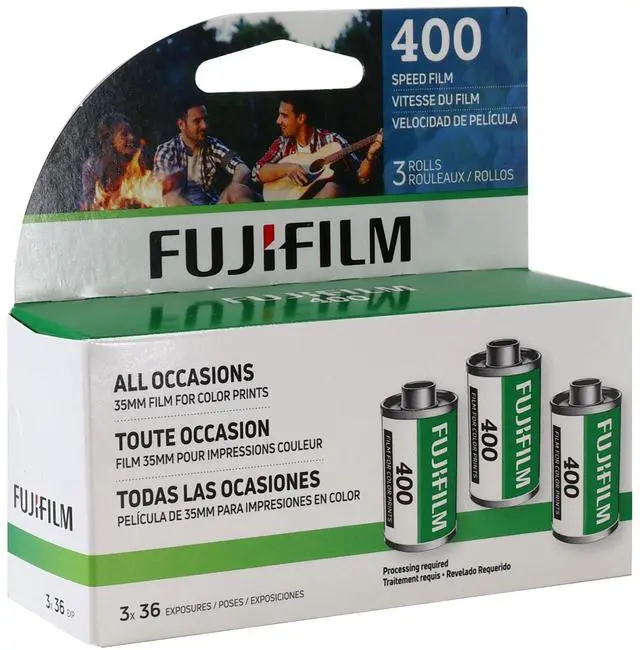 FUJIFILM 400 COLOR NEGATIVE 35MM FILM (36 EXPOSURES) - 3 PACK + FUJIFILM 200 COLOR NEGATIVE 35MM FILM (36 EXPOSURES) - 3 PACK FUJIFILM 400 Color Negative Film (3-Pack, 35mm Roll Film, 36 Exposures) This FUJIFILM 400 Color Negative (3-pack) is a high-speed, daylight-balanced, 35mm color negative film offering a wide exposure latitude for greater versatility as well as a fine grain structure with consistent and accurate colors. With a nominal sensitivity of 400 ISO this versatile stock can serve a multitude of applications under a wide range of lighting conditions. From sun-drenched vacation snaps to a flash-lit night scene, this color film is designed to produce quality prints.
