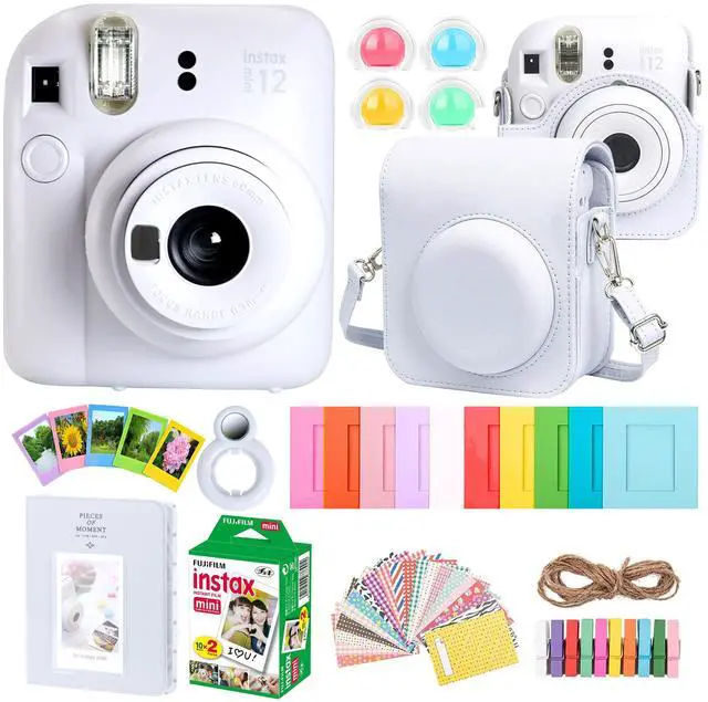 FUJIFILM INSTAX MINI 12 INSTANT FILM CAMERA (CLAY WHITE) + COMPLETE ACCESSORY KIT FOR FUJIFILM INSTAX MINI 8/9/11/12 CAMERA CASE, PHOTO ALBUM, FRAMES, STICKERS & LENS FILTERS (White) + FUJIFILM 2X10 FILM MINI INSTAX FILM PACK FUJIFILM INSTAX MINI 12 Instant Film CameraDedicated to the joy of living in the moment, the INSTAX MINI 12 Instant Film Camera provides easy-to-use controls and quickly produces memorable credit-card-sized photos. Offered here in pastel blue, this instant camera is ready to go with a simple twist of the lens. A close-up mode and selfie mirror make the camera perfect for portraits and self-portraits and the camera's automatic flash system allows you to get shots in dimly lit environments.