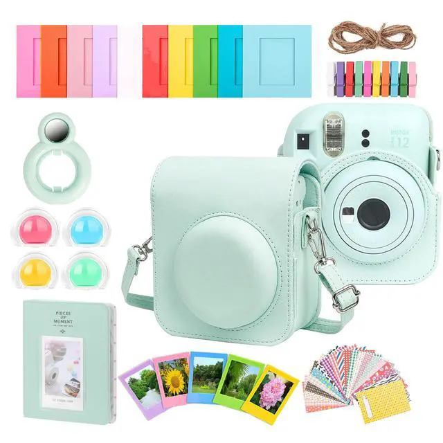 FUJIFILM INSTAX MINI 12 INSTANT FILM CAMERA (MINT GREEN) + COMPLETE ACCESSORY KIT FOR FUJIFILM INSTAX MINI 8/9/11/12 CAMERA CASE, PHOTO ALBUM, FRAMES, STICKERS & LENS FILTERS (GREEN) + 3X FUJIFILM 2X10 FILM MINI INSTAX FILM PACK FUJIFILM INSTAX MINI 12 Instant Film CameraDedicated to the joy of living in the moment, the INSTAX MINI 12 Instant Film Camera provides easy-to-use controls and quickly produces memorable credit-card-sized photos. Offered here in pastel blue, this instant camera is ready to go with a simple twist of the lens. A close-up mode and selfie mirror make the camera perfect for portraits and self-portraits and the camera's automatic flash system allows you to get shots in dimly lit environments.