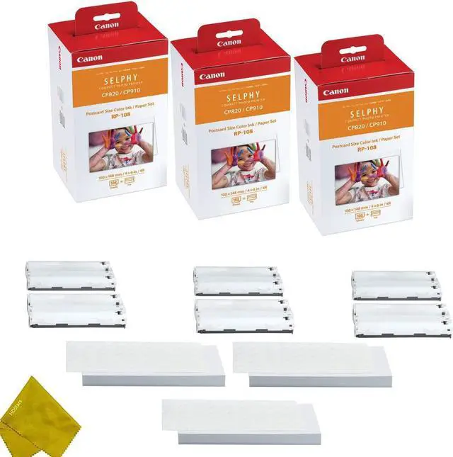 Canon RP-108 High Capacity Color Ink and 324 Sheets For SELPHY Printer (3-Pack)