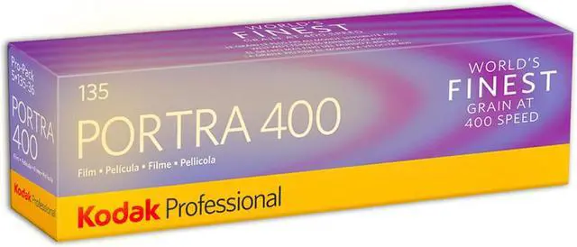 Kodak's Professional Portra 400 is a high-speed daylight-balanced color negative film offering a smooth and natural color palette that is balanced with vivid saturation and low contrast for accurate skin tones and consistent results. Utilizing the cinematic VISION Film technology, this film also exhibits a fine grain structure with very high sharpness and edge detail. A micro-structure optimized T-GRAIN emulsion makes it especially well-suited for scanning applications, and advanced development accelerators offer extended versatility when enlarging. This film has a nominal sensitivity of ISO 400/27° and is particularly well-suited to portrait and wedding photography, as well as nature, travel, and outdoor shooting with moving subjects, or when the lighting cannot be controlled.