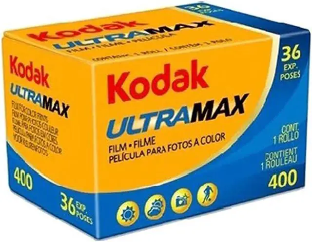 Kodak's GC/UltraMax 400 is a high-speed daylight-balanced color negative film offering a wide exposure latitude for greater versatility, as well as a fine grain structure with consistent and accurate colors. Optimized skin tone reproduction makes this film suitable for portraiture while a vibrant overall color palette benefits general and outdoor photography. It has a nominal sensitivity of ISO 400/27° and is well-suited to both scanning and enlarging applications.