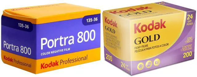 KODAK GOLD 200 COLOR NEGATIVE FILM 35MM ROLL FILM, 24 EXPOSURES + KODAK PROFESSIONAL PORTRA 800 COLOR NEGATIVE FILM (35MM ROLL FILM, 36 EXPOSURES) Kodak GOLD 200 Color Negative Film 35mm Roll Film, 24 Exposures KODAK GOLD 200 Film provides an excellent combination of colour saturation, colour accuracy, and sharpness in a 200-speed film. Excellent for picture-taking under general lighting conditions.