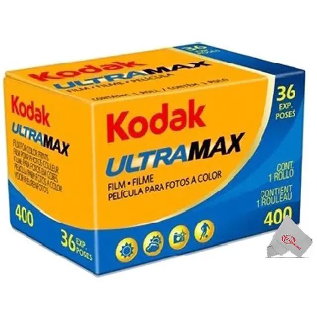 KODAK ULTRAMAX 400 35MM FILM, 36 EXPOSURES + KODAK PROFESSIONAL EKTAR 100 COLOR NEGATIVE FILM + KODAK COLORPLUS 200 COLOR NEGATIVE FILM 6031470 + ILFORD HP5 PLUS BLACK AND WHITE NEGATIVE FILM Kodak's GC/UltraMax 400 is a high-speed daylight-balanced color negative film offering a wide exposure latitude for greater versatility, as well as a fine grain structure with consistent and accurate colors. Optimized skin tone reproduction makes this film suitable for portraiture while a vibrant overall color palette benefits general and outdoor photography. It has a nominal sensitivity of ISO 400/27° and is well-suited to both scanning and enlarging applications.