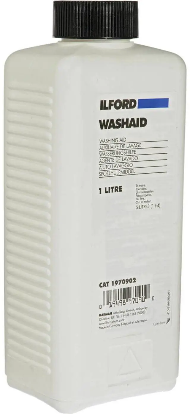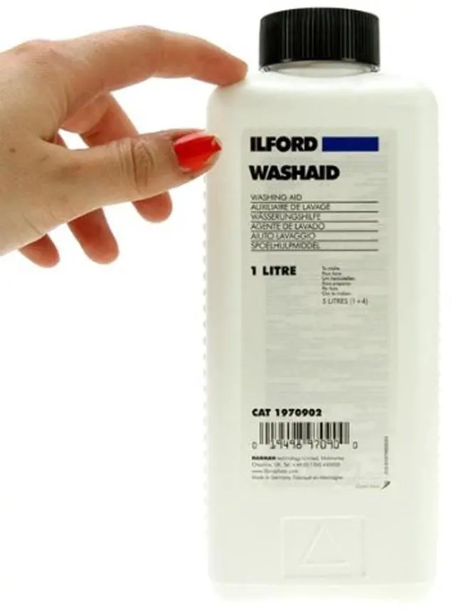 Ilford Wash Aid is a hypo-eliminator formulated to aid the efficient removal of the thiosulphate by-products of fixation by ion exchange. It is particularly useful in speeding up the washing of fibre based papers and is designed to be used with the Ilford optimum permanence sequences. It can be used to aid the rapid washing of all Ilford films and fibre papers saving both time and water. It is particularly useful if a hardening fixer has been used.