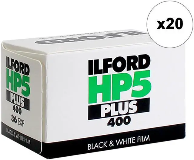 20X ILFORD HP5 PLUS BLACK AND WHITE NEGATIVE FILM (35MM ROLL FILM, 36 EXPOSURES)Ilford HP5 Plus Black and White Negative Film (35mm Roll Film, 36 Exposures)Ilford's HP5 Plus Black and White Negative Film is a traditional and versatile panchromatic film designed for general use in a wide variety of shooting conditions. Exhibiting notably wide exposure latitude, this film responds well to use in mixed and difficult lighting and provides medium contrast for greater overall control. It has a nominal sensitivity of ISO 400/27° when developed in standard black and white chemistry, and responds well to push processing. HP5 Plus is a flexible film type that is ideally suited for use in general photographic applications in an array of different lighting conditions.