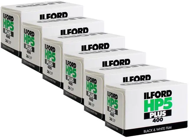 6X ILFORD HP5 PLUS BLACK AND WHITE NEGATIVE FILM (35MM ROLL FILM, 36 EXPOSURES)Ilford HP5 Plus Black and White Negative Film (35mm Roll Film, 36 Exposures)Ilford's HP5 Plus Black and White Negative Film is a traditional and versatile panchromatic film designed for general use in a wide variety of shooting conditions. Exhibiting notably wide exposure latitude, this film responds well to use in mixed and difficult lighting and provides medium contrast for greater overall control. It has a nominal sensitivity of ISO 400/27° when developed in standard black and white chemistry, and responds well to push processing. HP5 Plus is a flexible film type that is ideally suited for use in general photographic applications in an array of different lighting conditions.