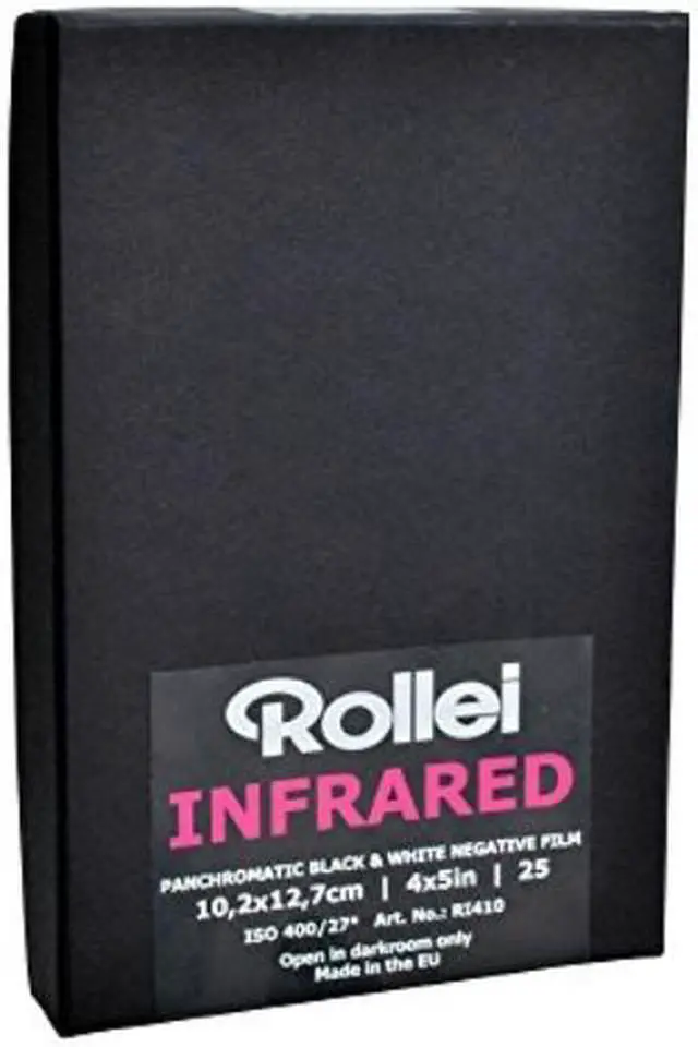 Rollei Infrared 400 is well suited for experimental, creative applications and for scientific photography. This film has a sensitivity up to 820nm and an ISO of 400 without filtering. Perfect exposures can be reached, using special infrared filters, leading to results with an unusual tonal range. Special AURA effects can be obtained by overexposing film. It has high contrast, very fine grain and excellent sharpness and is especially suited for scanning.