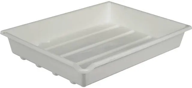 Molded from thick polypropylene, these trays are ideal for school and industrial use. They're chemical-resistant, incredibly durable, and their base ribbing ensures rigidity while preventing prints from sticking to the tray. The patented design keeps your thermometer from sliding into the solution, and every tray has an extra large pouring lip to minimize chemical splash. Base design gives maximum economy of solution and easy print removal; Pouring lip for drip-free emptying;