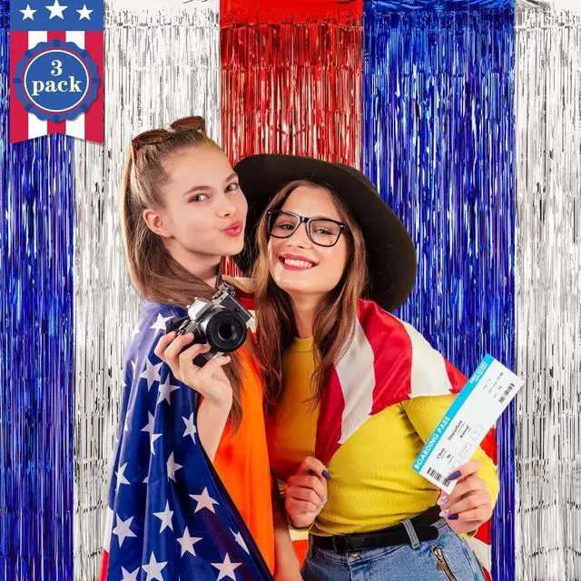4th of July Decorations, 3Pack Red White and Blue Decorations Streamers Foil Fringe Curtains Photobooth Props Party Backdrop for Themed Olympics Election Veterans Day Decor