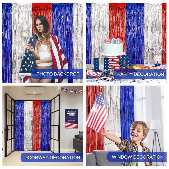 SHINY PARTY BACKDROP : The beautiful tinsel foil fringe curtain is good for serving as 4th of July decorations, Memorial Day decorations, Labor Day decorations, baseball party decorations, Spider-Man birthday party supplies, retirement going away party decorations, American theme party decorations, you will be surprised at the atmosphere and view they create.