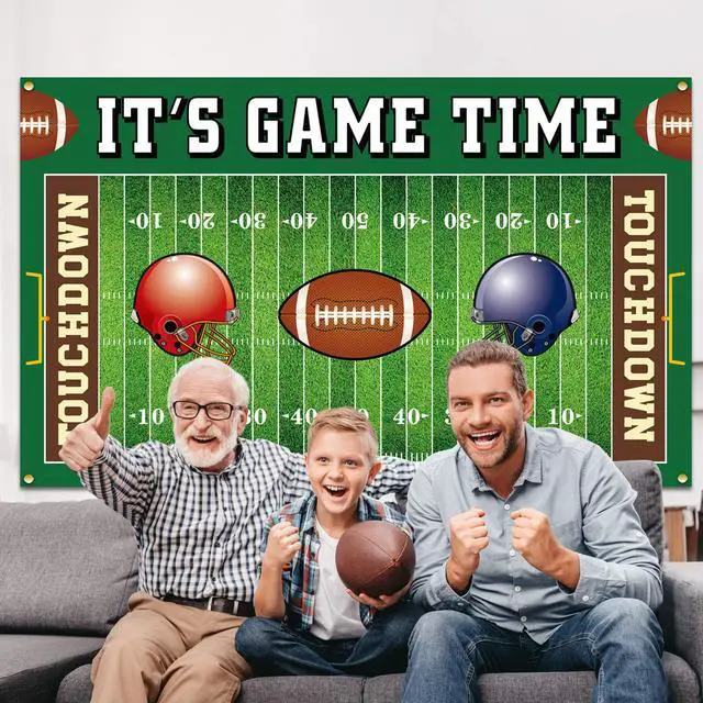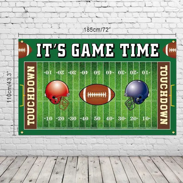 SIZE Football party game background measuring 72.83 x 43.31 x 0.04 inches, easily allowing for football theme pictures for both kids and adults. It is convenient to find an ideal place to hang it up, like a ceiling, doorway, or yard. After use, you can fold it up for easy storage for the next time.